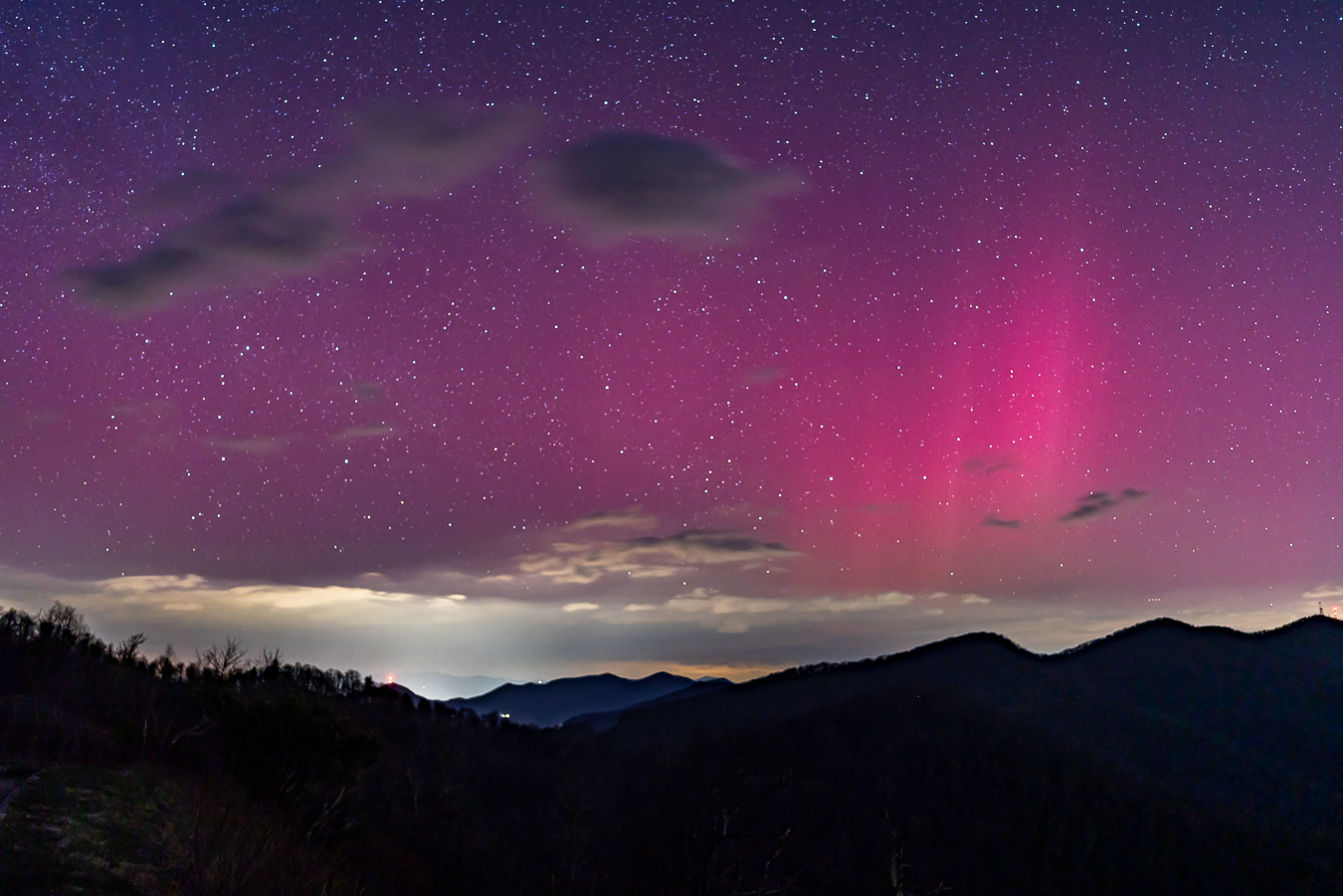 Another image of the night sky near Asheville, North Carolina with the Northern Lights. A vanishingly rare phenomenon captured in a digital photograph.