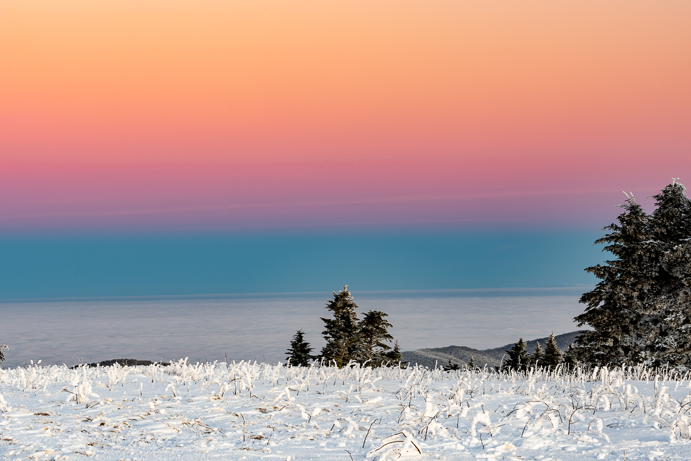 Some of my favorite colors in the sky are found on the western horizon at sunrise, and the eastern horizon at sunset. The blue immediately above the horizon is a phenomenon called “Earth shadow” because it is atmosphere that has been darkened by earth’s shadow. The pink band immediately above that is the “Venus belt” and is that color because of backscatter on the opposite horizon, much like the “alpenglow” phenomenon. It can be difficult to look away from the side where the actual sunrise or sunset is happening, but you should do it because it’s the only place you’ll ever see this.