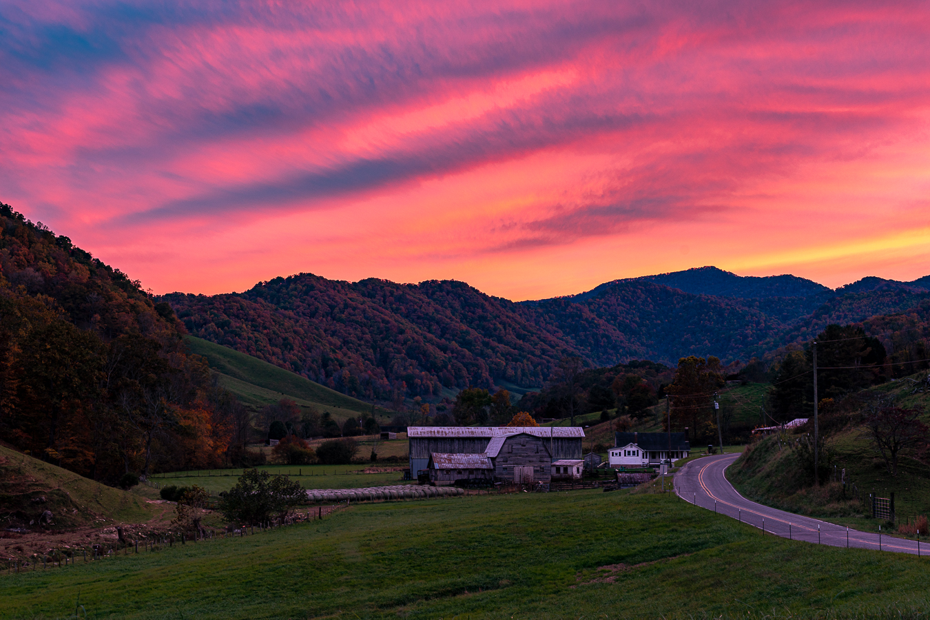 An extraordinarily colorful sunset in the mountains of Western North Carolina.