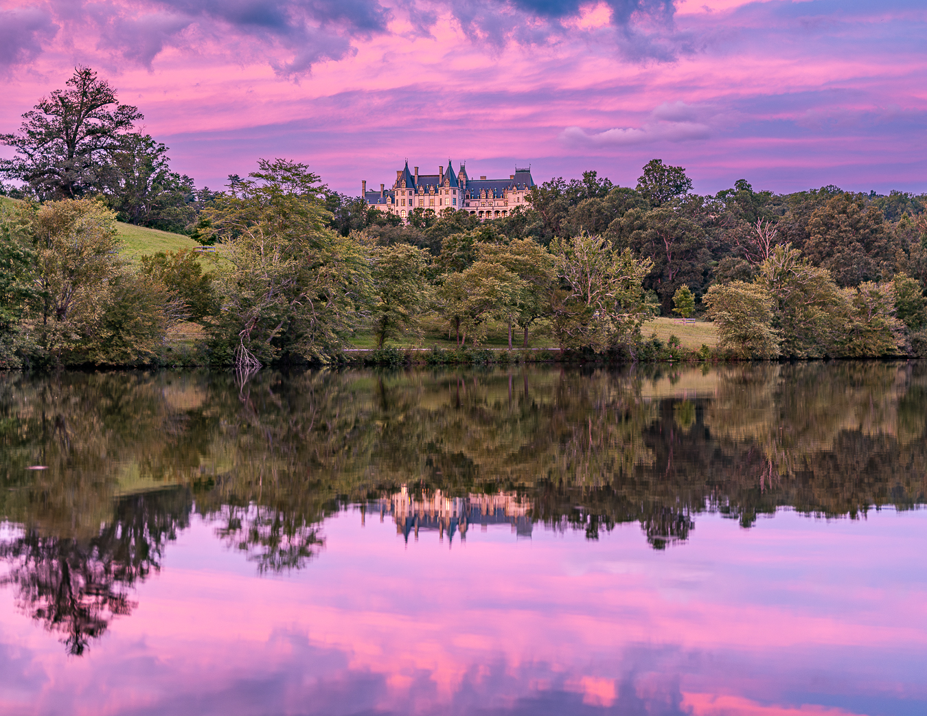 A stunner sunset view of a beautiful house built by George and Edith Vanderbilt